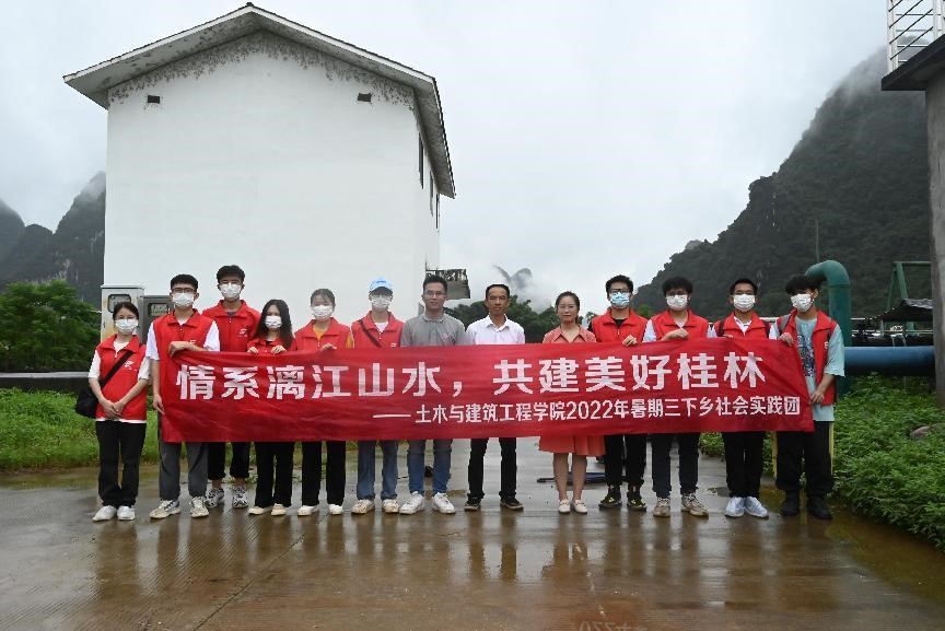 2022年7月4日上午,太阳成集团官网“情系漓江山水,共建美好桂林”社会实践团一行12人,出发前往兴坪镇垃圾中转站及污水处理厂。在团队谢基柱老师和罗银霞老师的联系下,实践团荣幸地邀请到镇长带领实践团前往调研。